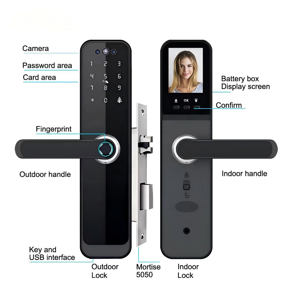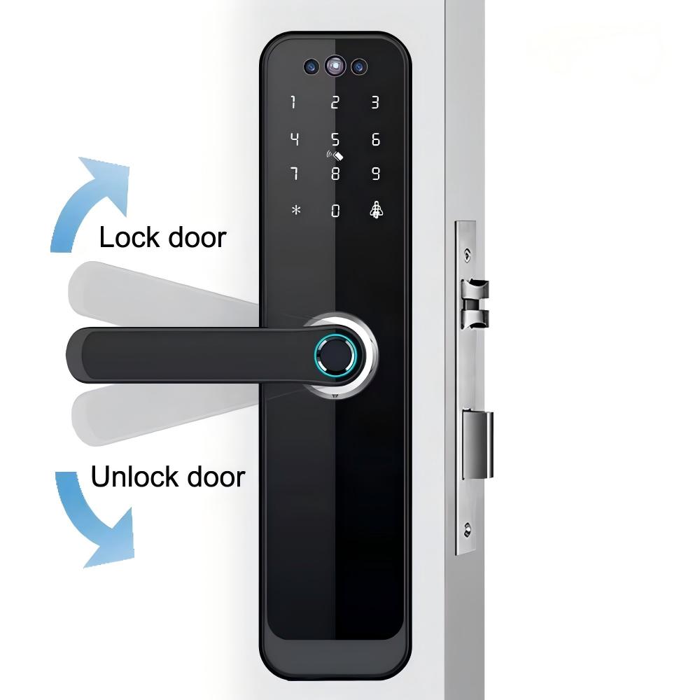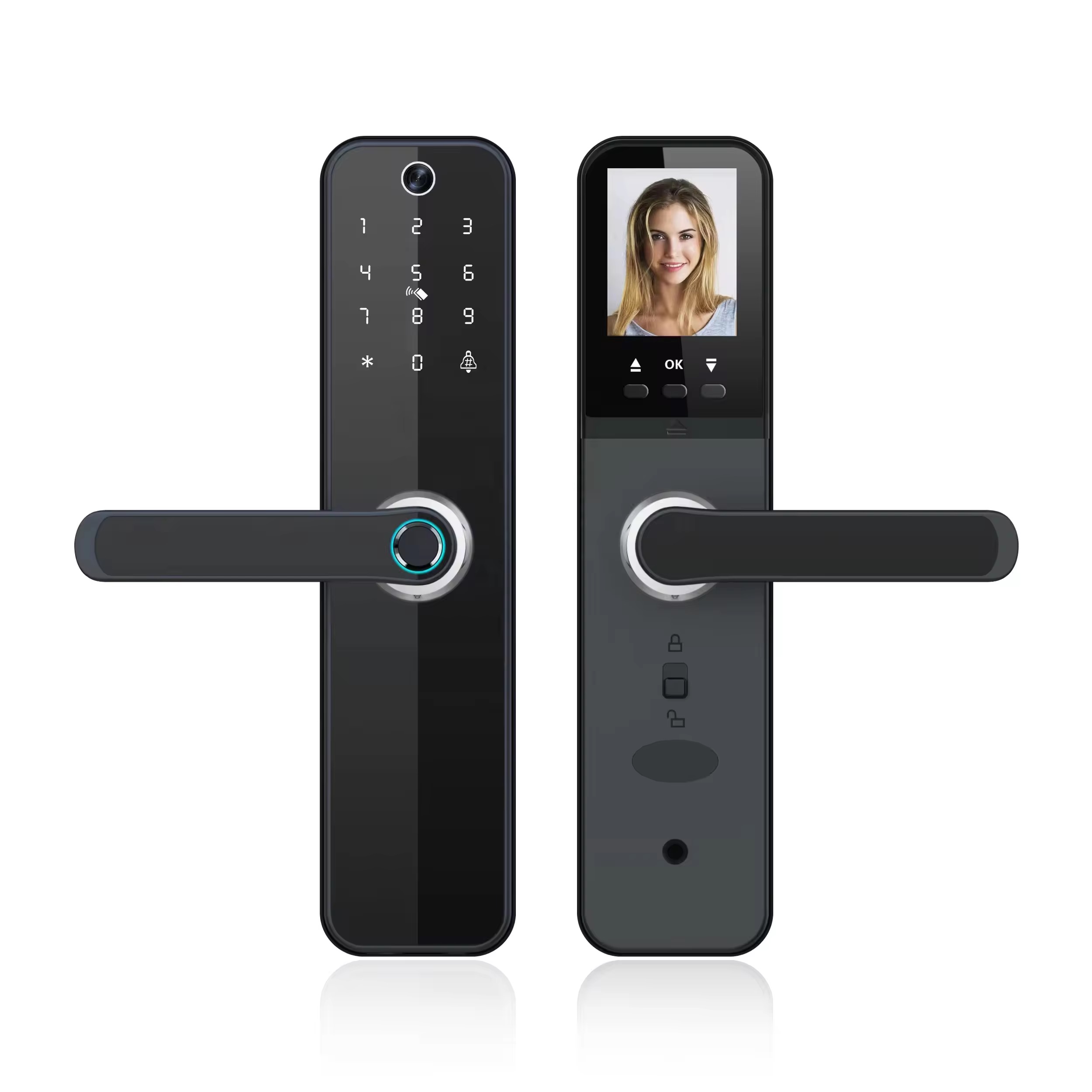 This is the H07P facial recognition smart lock. This version features all commonly used unlocking methods and has added a new facial recognition function. Experience seamless access control with the facial recognition function of the smart door lock. This advanced technology scans and analyzes facial features, allowing only authorized individuals to access. Say goodbye to forgetting keys or misplacing access cards, and embrace the future of a secure and convenient door lock system.